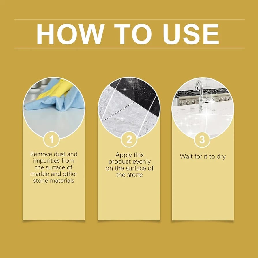 About this item Marble Cleaner (best for kitchen countertop/ marble dining table n multiple marble products) Effective product, which provides an amazing shine n cleans the stain altogether Introducing our premium Marble Cleaner, the ultimate solution for restoring the natural beauty of your marble surfaces.  Specially formulated and carefully crafted, our Marble Cleaner is designed to effectively clean, polish, and protect your marble, giving it a stunning, luxurious  Key Features: Deep Cleaning Power: Our Marble Cleaner is highly effective in removing dirt, grime, stains, and residue from your marble surfaces. How to Use: 1. Shake the Stone Cleaner  before use 2. Pour the marble Floor Cleaner where it needs to be coated 3. Wipe with a cloth or towel. 4. Restore to state.Package Includes: 1Pcs * Stone Stain Remover Cleaner