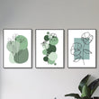 set of 3 abstract plant art wooden canvas frames for wall decore / sticky phototiles for home and office