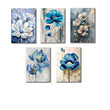Set of 5 Blue Flowers Wall Art Wooden Frames for Home Decoration / Sticky Photo Tiles