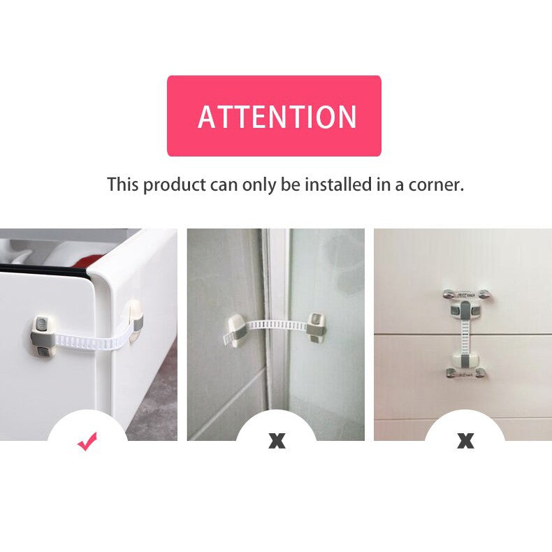 It can lock cabinets, refrigerators, and microwave ovens to prevent babies from turning on at will, crushing fingers, damaging objects or falling objects and accidentally hurting babies. In addition to a wide range of applications for firmly locking refrigerators, drawers, and cabinetsTwo-key balanced design, you need to press two fingers at the same time, or even force it to openThe length can be adjusted, and the length can be cut according to the needs to match different environmentsStrong paste, very firmThe simple color design is not easy to attract the attention of babies.
