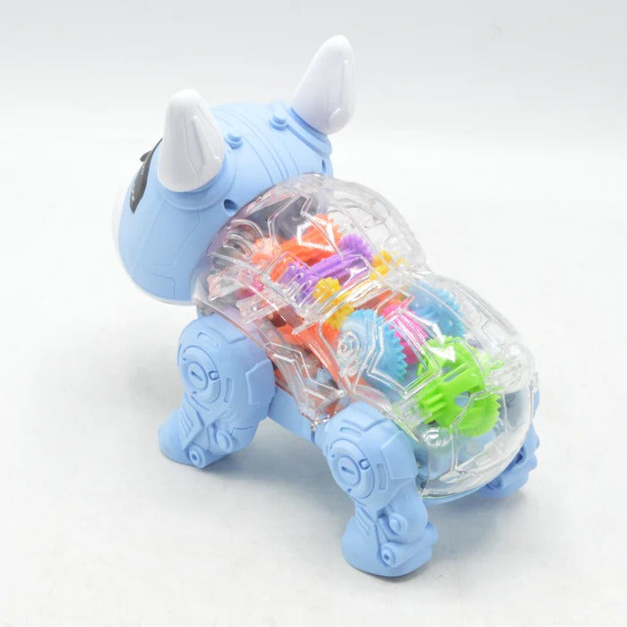 Introduce your child to futuristic fun with the Mecha Dog interactive robot toy! This adorable and engaging robotic pet is designed to captivate young minds with its exciting features. The Mecha Dog boasts "Gorgeous Lighting" that illuminates its body in a dazzling display, especially when the lights are turned on and the music plays. It comes alive with "Gear-Driven Walking" action, moving forward with realistic mechanical movements.
