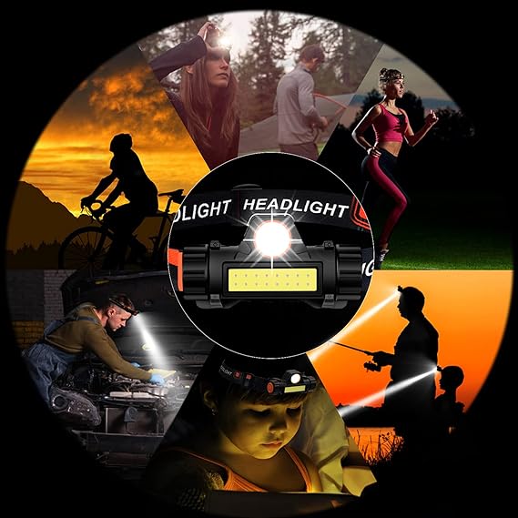 ?Adjustable Angle and Strap? The headlamp is only weighted 2.5oz, the lamp head can be rotated 90°. The head flashlight uses a comfortable elastic headband, which can easily adjust the length to perfectly fit your head size.