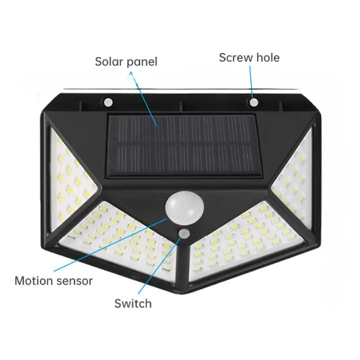 Feature: 1.?More Brightness with 100 LEDs ? Our outdoor solar motion sensor lights with 100 LED sources that provide a brighter, more powerful lighting solution that will illuminate an area instantly and remain brighter for longer. 2.?270° Wider Illumination Angle? This led solar lights provide lasting solar powered brightness that extends across a surface area of 270° offering the biggest illumination than competitors. Save money, add to the security of your home in an energy and enviro-friendly way. 3.?More Sensitive with PIR technology? Our solar motion lights featured the outstanding PIR technology that allows motion detection functionality at a distance of up to 3-5 metres across a wide angle of 120° in a quick response time. 4.?3 Intelligent Modes? The 100 LED Solar Light have 3 Modes, you can choose the perfect mode according to your diverse needs. Medium light mode, Dim light sensor mode and sensor mode. 5.?Easy Installation? Just hang or use screw to mount this Solar Lights in any ideal place with sunlight. 6.?Waterproof IP65 and Heatproof? The 100 led Solar Motion Sensor Light is great for wall, patio, garden, porch, lawn, pathway, Driveway , gutter, etc.. It's specifically designed to withstand extreme weather conditions. Specification: Item type: Outdoor Solar Light LED: 100SMD2835 1W/PCS Material: PC+ABS Solar panel specifications: polysilicon 5.5V 1.43W Battery specification: 18650 lithium battery 3.7V with charge and discharge protection Charging time: 8 hours in the sun PIR sensing angle: 120 degrees Sensing distance: 6-8 meters Waterproof Level: IP65 3 Intelligent Modes of Solar light: 1. Medium Light Mode: The solar light will charge in the day, Auto turn on to continuous bright light in darkness or at night. 2. Dim Light Sensor Mode: The product charges in the day, auto turn on dim light in darkness or at night when no motion is detected; it will turn to bright light when motion is detected and last about 20 seconds; it will turn to dim light again when there is no motion. 3. Sensor Mode the product charges in the day, auto turn on bright light in darkness or at night when motion is detected and last about 20 seconds; the light will go off when there is no motion. 4. Finally, Light-off Mode It will be turned off after press the button again. Note: Before the first use, please make sure the solar light are be charged with sufficient sunlight for 12 hours. The solar light should be installed in places where sufficient sunshine is available. The solar panel can charge quicker under strong sunlight. It can not charge or charge slowly under weak sunlight.The charging time depends on the intensity of sunlight. Original Product Picture Product Features Video & Pictures [video width="642" height="360" mp4="https://hhcnewapp.blr1.digitaloceanspaces.com/uploads/2024/10/WhatsApp-Video-2024-04-27-at-1.29.26-PM.mp4"][/video]
