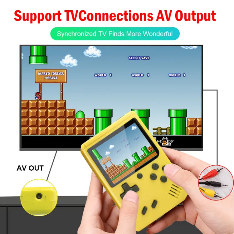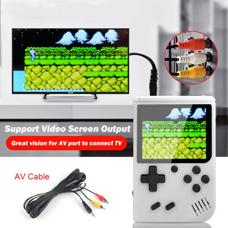 1 Player or 2 Player Silicone buttons ensure fast response, comfortable springback and smooth control. 400 games in 1, enough games for 1 year playing. Rechargeable Li-ion battery provides 5 hours long battery life each time, which can be recharged for 500 times. 3.0inch colored display with ABS shell, durable and anti-drop. Plug and play after connecting with the TV. Specification: Product Name: 400 in 1Handheld Game Console Display: Colored Display Battery: Rechargeable Li-ion Battery Battery Life: 5hours Video/Audio Port: AV Size: 10.1*6.9cm Weight: 160g original picture