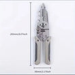 Multi-Function Wire Stripper And Cutter - Electrical Tool With Wire Cutting, Stripping, Crimping & Screw FunctionsTackle all your electrical and wiring tasks with this versatile Multi-Function Wire Stripper and CutterDesigned for both professionals and DIY enthusiasts, this tool combines multiple essential functions in one compact design, including wire stripping, cutting, crimping, screw tightening, and more. Made from durable, high-quality steel with ergonomic non-slip handles, it ensures precision, safety, and comfort during extended use. Perfect for home repairs, automotive work, and electrical projects.Multi-Function Design: Includes clamping, wire stripping, wire cutting, line cutting, wire breaking/straightening, wire splitting, wire winding, pressure crimping, hexagonal adjustments, and screw unscrewing. Ergonomic Grip: Non-slip handles for comfort and control. Durable Build: Heavy-duty steel construction for long-lasting use. Precision Cutting: Sharp blades for clean, accurate cuts every time. Lock Buckle: Easy storage and portability with safety lock