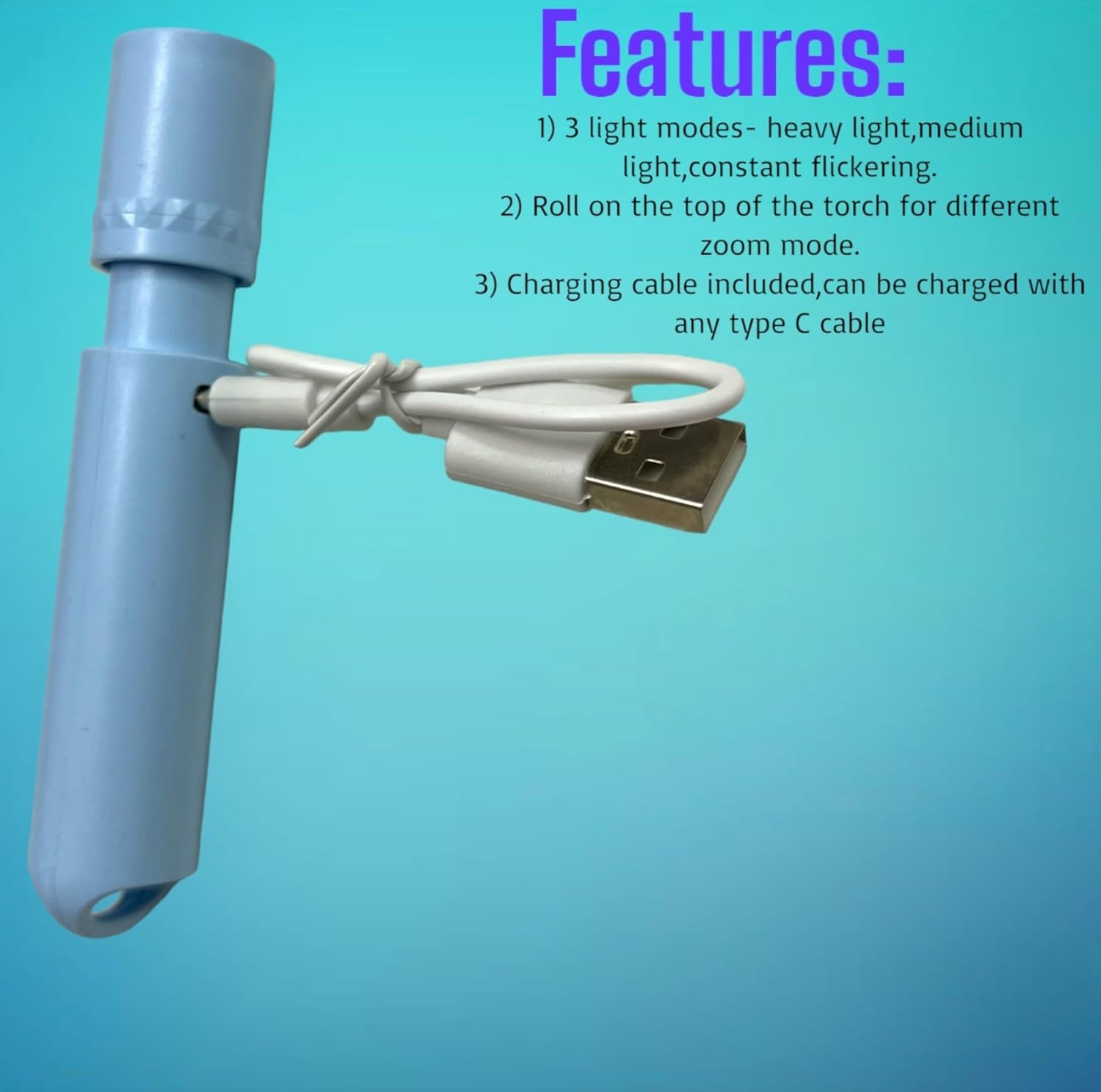 Description Pl 003 Long Range LED Rechargeable Torch Light – 1000 Lumens, 3 Modes, 500m Beam Distance, 1400mAh Battery with USB Cable, Durable Outdoor Flashlight Experience powerful illumination with this Long Range LED Rechargeable Torch Light, designed for both everyday use and outdoor adventures. Delivering up to 1000 lumens of brightness and a beam distance of 500 metres, this torch ensures clear visibility in low-light and dark conditions. With three lighting modes — High, Low, and Strobe — it provides the flexibility you need for camping, hiking, night walks, or emergency situations. Powered by a 1400mAh rechargeable lithium-ion battery, the torch offers extended runtime and comes with a USB charging cable for convenient recharging. Built with a durable and sturdy body, this torch is designed to withstand rough handling, making it a reliable companion for both indoor and outdoor use. Key Features Product Name: Long Range LED Rechargeable Torch Light Brightness: 1000 lumens powerful LED illumination Beam Distance: Up to 500 metres for long-range visibility Lighting Modes: 3 modes – High, Low, Strobe Battery: 1400mAh rechargeable lithium-ion with USB charging cable Runtime: Extended battery life for outdoor use Durable Build: Sturdy body designed for tough conditions Versatile Use: Ideal for camping, hiking, travel, night patrol, or emergency use