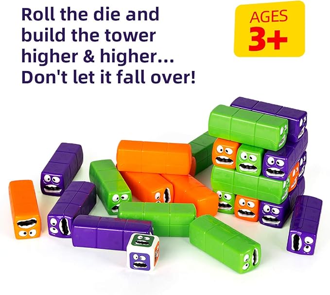 Package Includes: 24 colorful wobbly worms building blocks with a dice! Comes packaged in a box for easy storage and transportation. Incredibly Durable: Made of high quality ABS, non-toxic. Robust casing protects against drops. Perfect for indoor or outdoor events such as family gathering, picnics, birthdays, parties, BBQ's, tailgating, group events, camping and much more. Provides fun for the whole family, anyone can play. Players will take turns rolling the dice, then carefully removing one block of that color and re-positioning it on the top of the tower. Roll the die and build the tower higher & higher. Test your skills and steady hands.   AME OF CAREFULLY REMOVING and re-stacking wacky worms higher and higher without letting them fall! ROLL THE DIE TO DECIDE which color to pull; last to take a turn without toppling the tower wins! PERFECT FOR AGES 3 TO 6 YEARS; lightweight game pieces; BPA-free; ideal for smaller hands CHALLENGES FINE MOTOR SKILLS, HAND-EYE COORDINATION, spatial reasoning, concentration INCLUDES 24 WORM BLOCKS, color die, detailed game rules; frustration-free packaging [video width="480" height="864" mp4="https://hhcnewapp.blr1.digitaloceanspaces.com/uploads/2024/10/WhatsApp-Video-2024-11-13-at-2.23.11-PM.mp4"][/video]